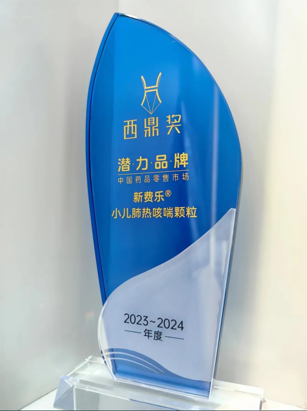 韦德1946药业新费乐牌小儿肺热咳喘颗粒(4g)荣获“2023-2024年度中国药品零售市场潜力品牌”